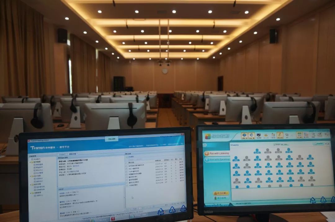 学院同声传译实验室,CAT笔译实验室、云网络语言实验室等安装了翻译教学实训系统、Trados翻译软件系统及其他翻译软件和工具书,为口笔译教学实践提供先进、真实和高效的平台。