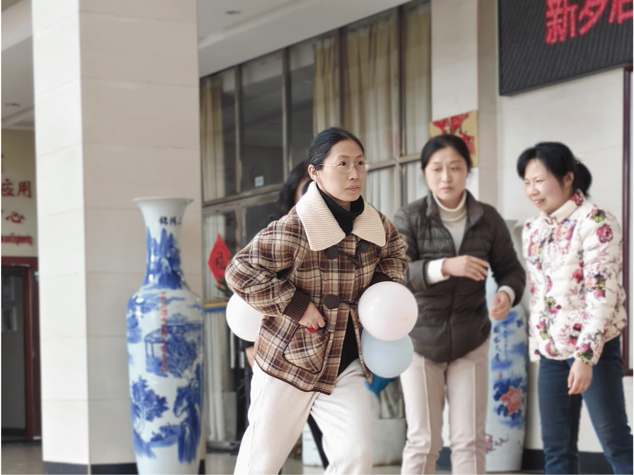 本次活动分为五个小组,通过趣味游戏增进交流、凝聚力量。在带球接力跑中,老师们腰间绑上气球进行接力交接,大家默契配合、你追我赶,现场欢声笑语不断;在投幸运球积福点活动中,既考验老师们的技巧又充满了运气,引得现场阵阵喝彩。