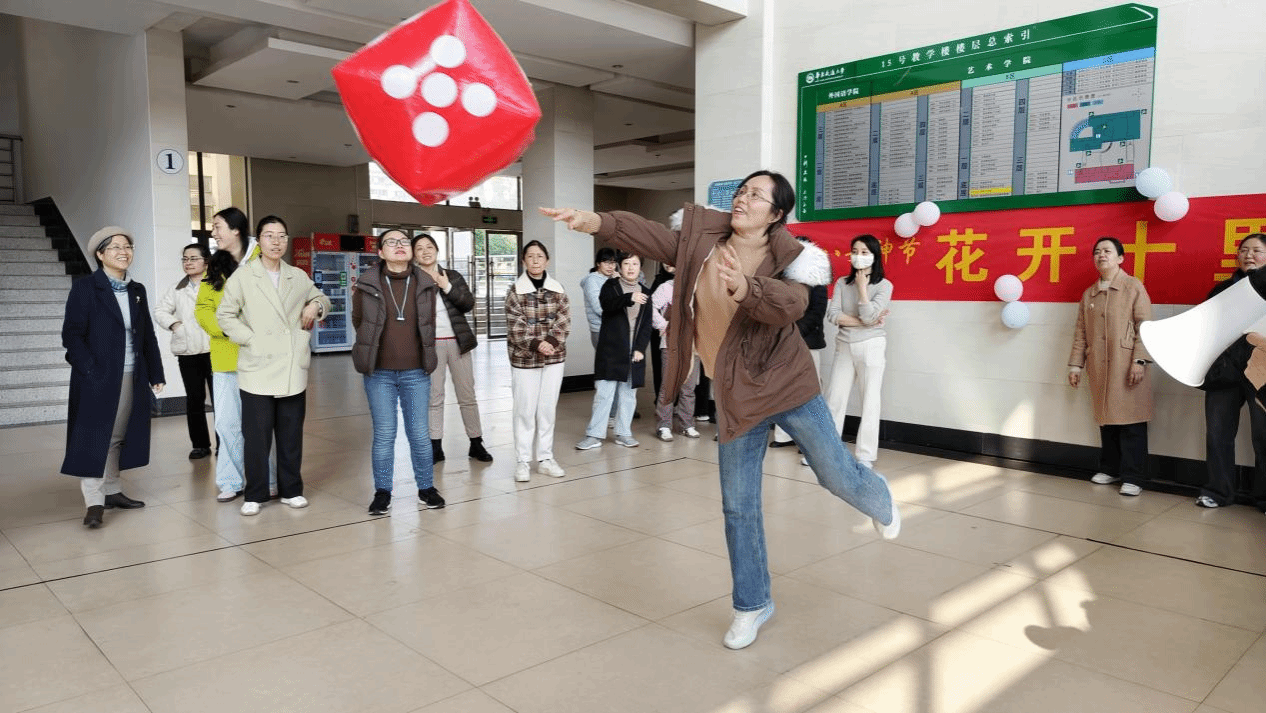 活动在明媚的春光中拉开帷幕。院分工会精心策划了此次轻松欢快的庆祝活动,祝愿全体女教师“眼里有光,心中有爱,不负自己,自在欢喜”。现场悬挂的主题横幅格外醒目,营造出温馨喜庆的节日氛围。学院全体职工首先前往孔目湖环湖游园,随后前往大厅开展趣味活动。